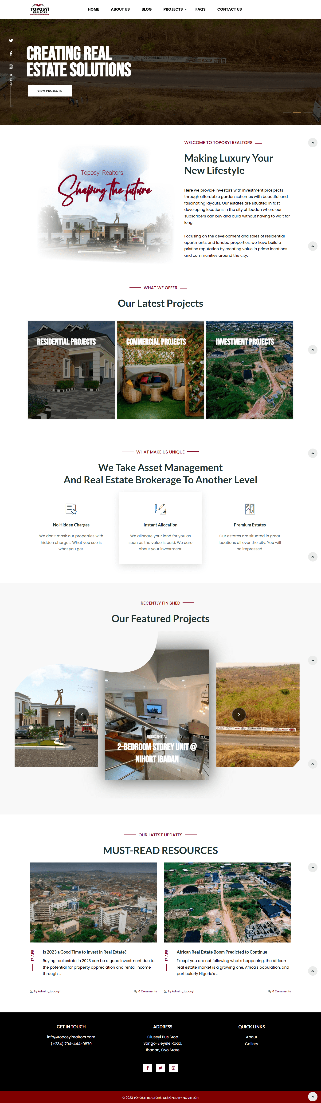 Built a highly intuitive real estate platform for Toposyi Realtors, for showcasing estate schemes and for managing sales and consultants marketing performance.